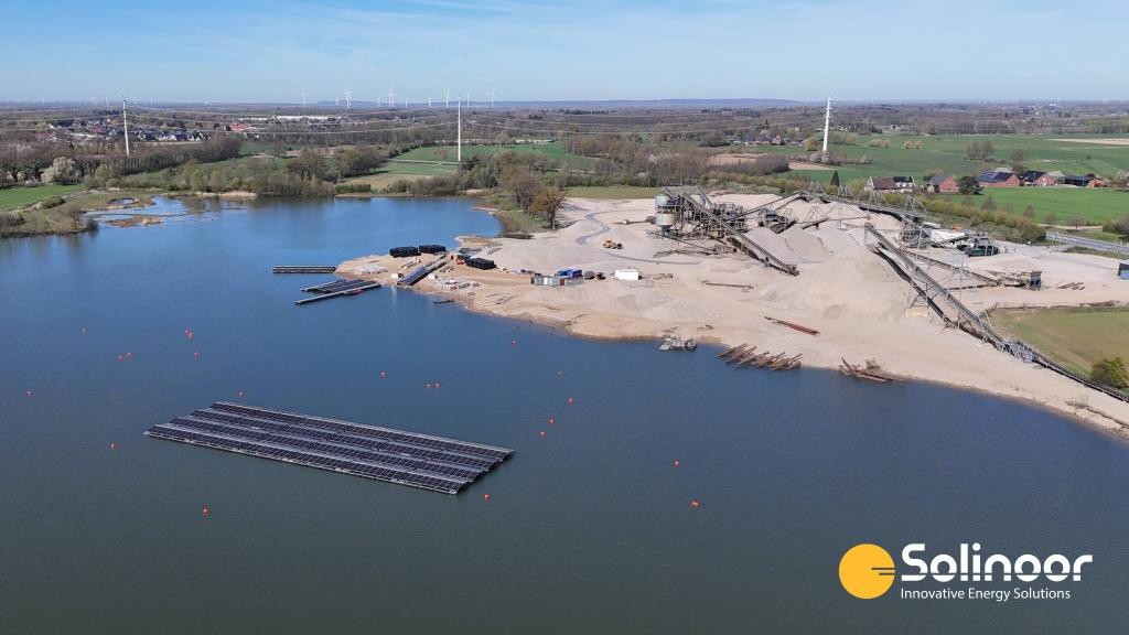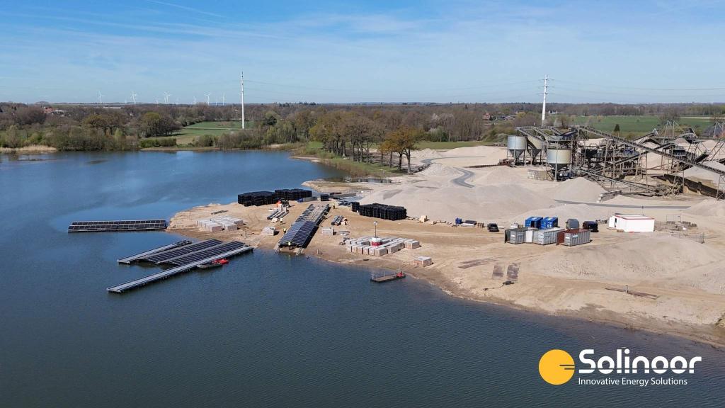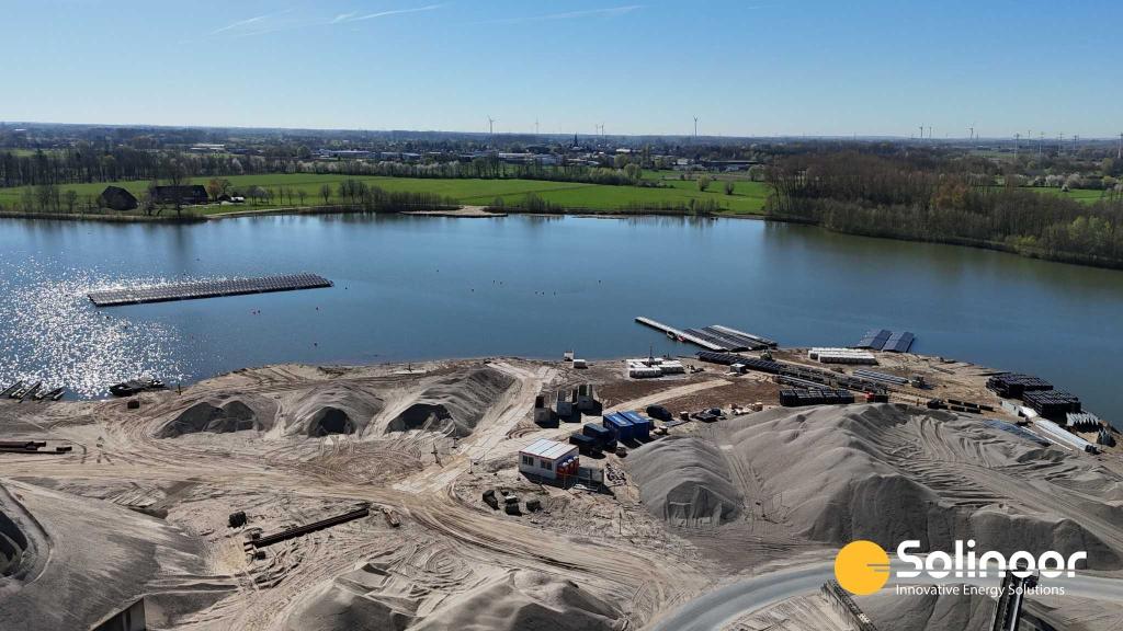 In the first half of 2026, Solinoor is working on a floating solar park near Breels in Germany, developed in collaboration with Heeren-Herkener Kiesbaggerei GmbH. For this project on a sand extraction lake, we carried out the full project development in close cooperation with our German partners, from energy analysis and design to the permit application.