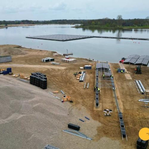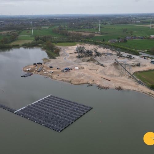 The solar park will have a capacity of approximately 1.6 MWp and will consist of around 2,600 solar panels. The installation is fully tailored to the sand extraction company’s own energy demand and will therefore provide 100% self-consumption. By making smart use of the water surface of the sand extraction lake, sustainable energy is generated without placing additional pressure on scarce land resources.